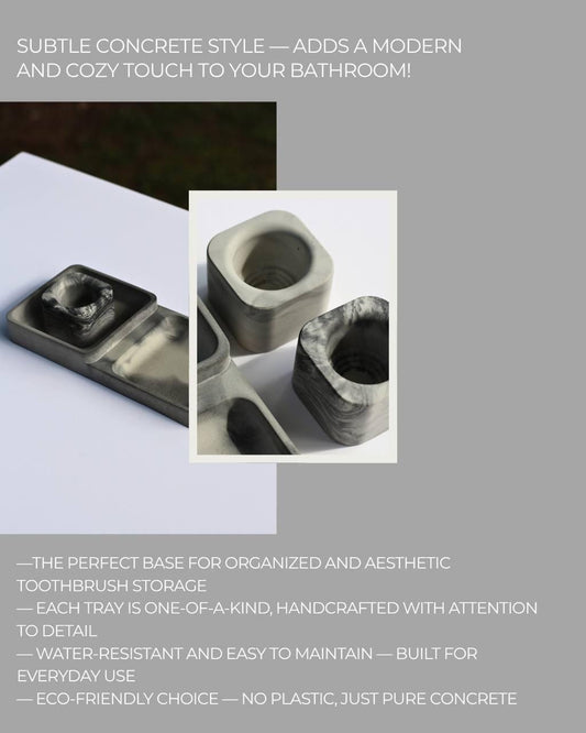 Concrete Bathroom Tray and Toothbrush Holder Set: Modern Minimalist Decor