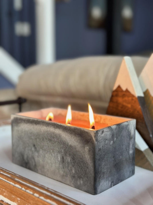 Handmade Concrete Soy Candle: Natural Wood Wick, Minimalist Decor