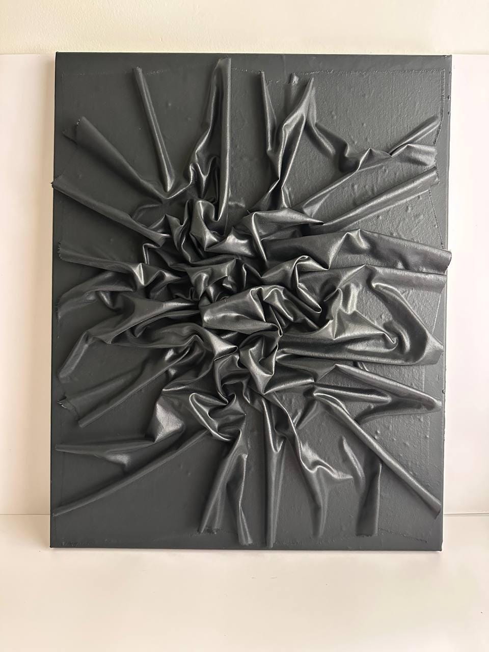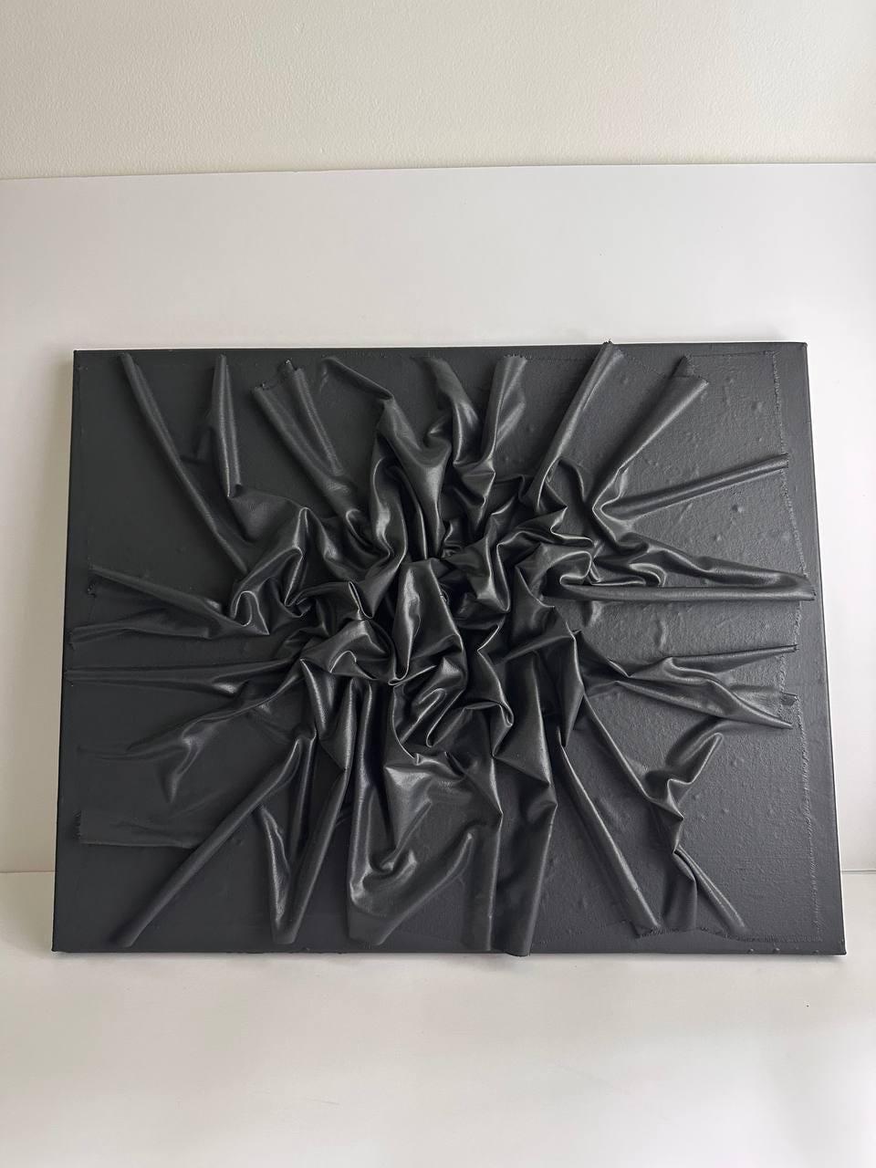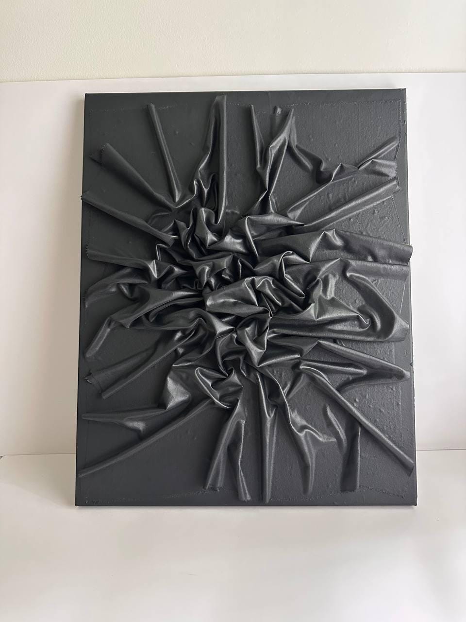 Black texture art, Abstract wall decor, Minimalist canvas, 3D fabric artwork, Modern home decor, Contemporary painting, Sculptural piece