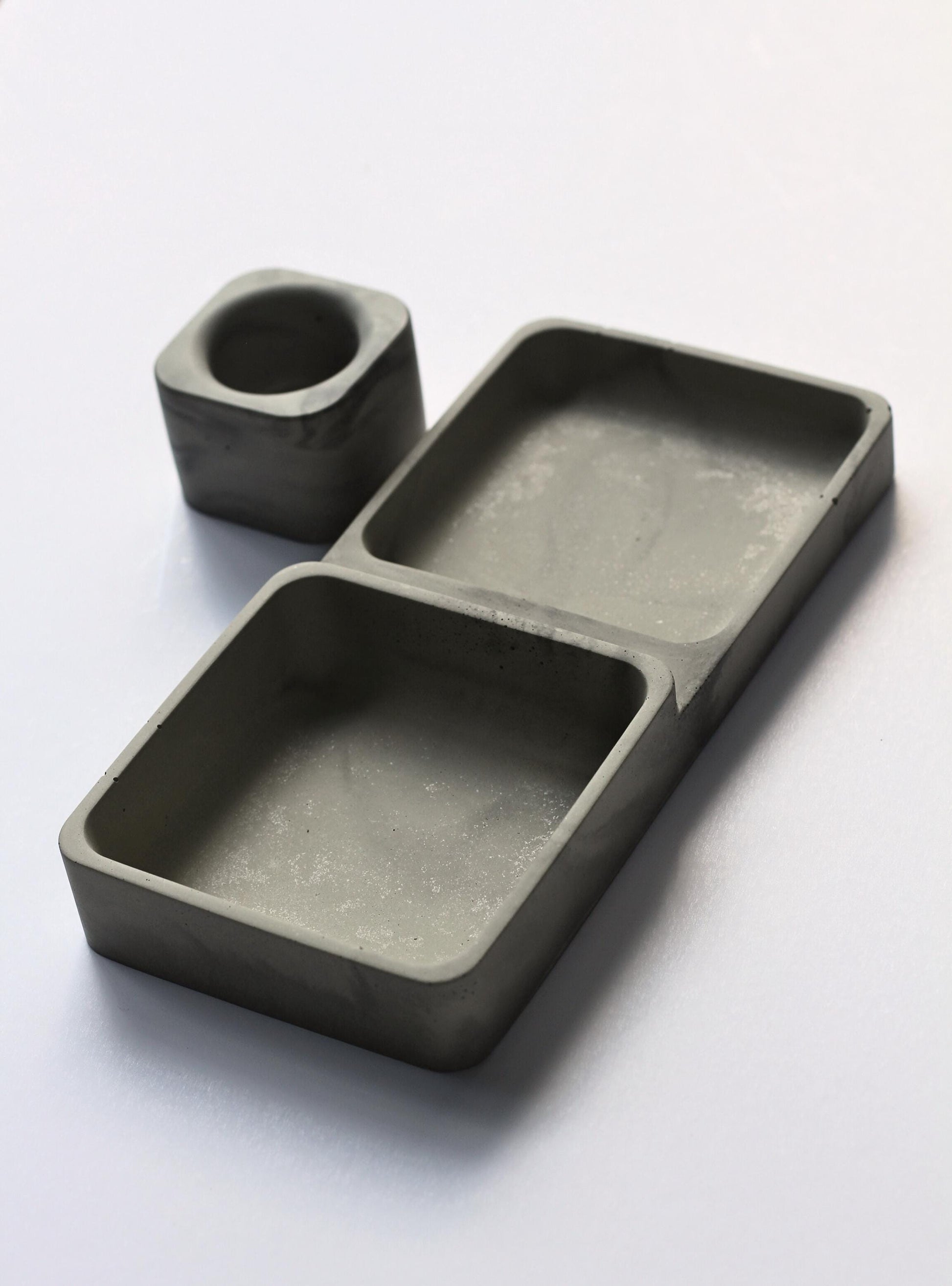 - 1 concrete tray – ideal for couples, families, or dual brush storage