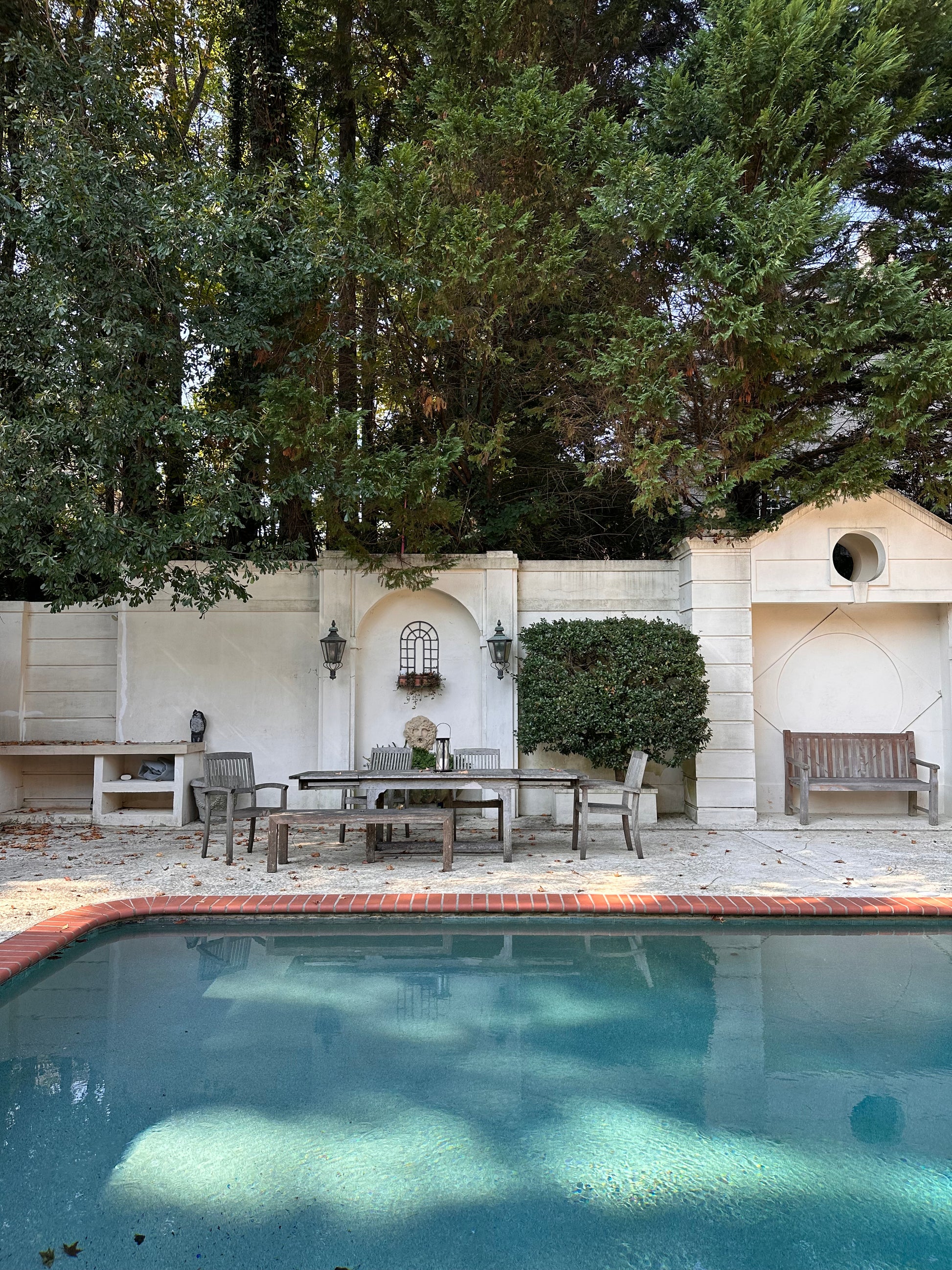 Experience a relaxing outdoor evening by the pool of a 1950s Spanish-style villa — surrounded by greenery, soft light, and creative energy.