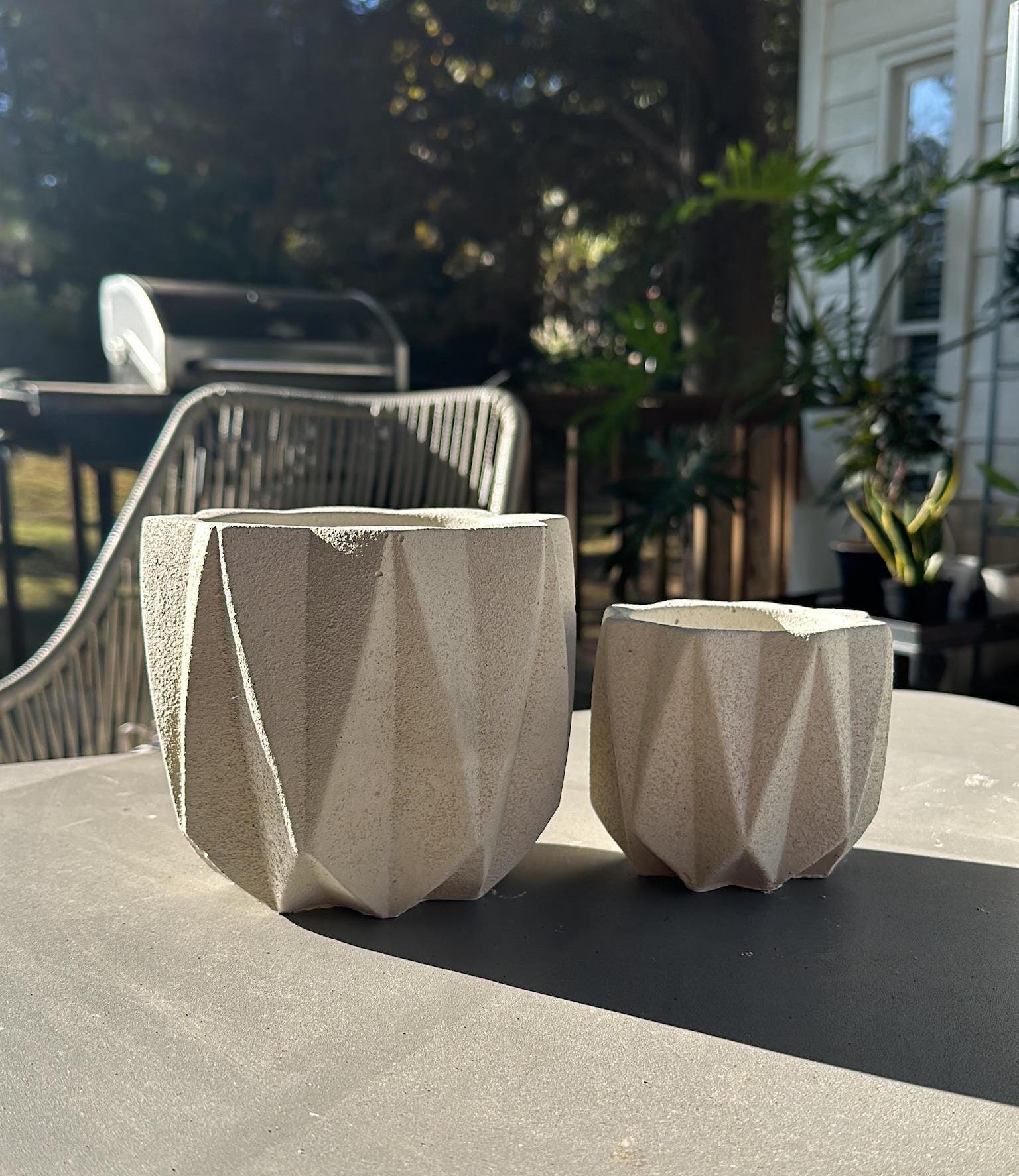 Add a touch of industrial elegance to your space with these handcrafted geometric concrete planters. Designed with clean angular lines and sculptural elements, these planters blend modern minimalism with Scandinavian aesthetics. Whether displayed as a set or individually, they create a stylish home for succulents, cacti, or decorative accents, enhancing any living room, office, or workspace.