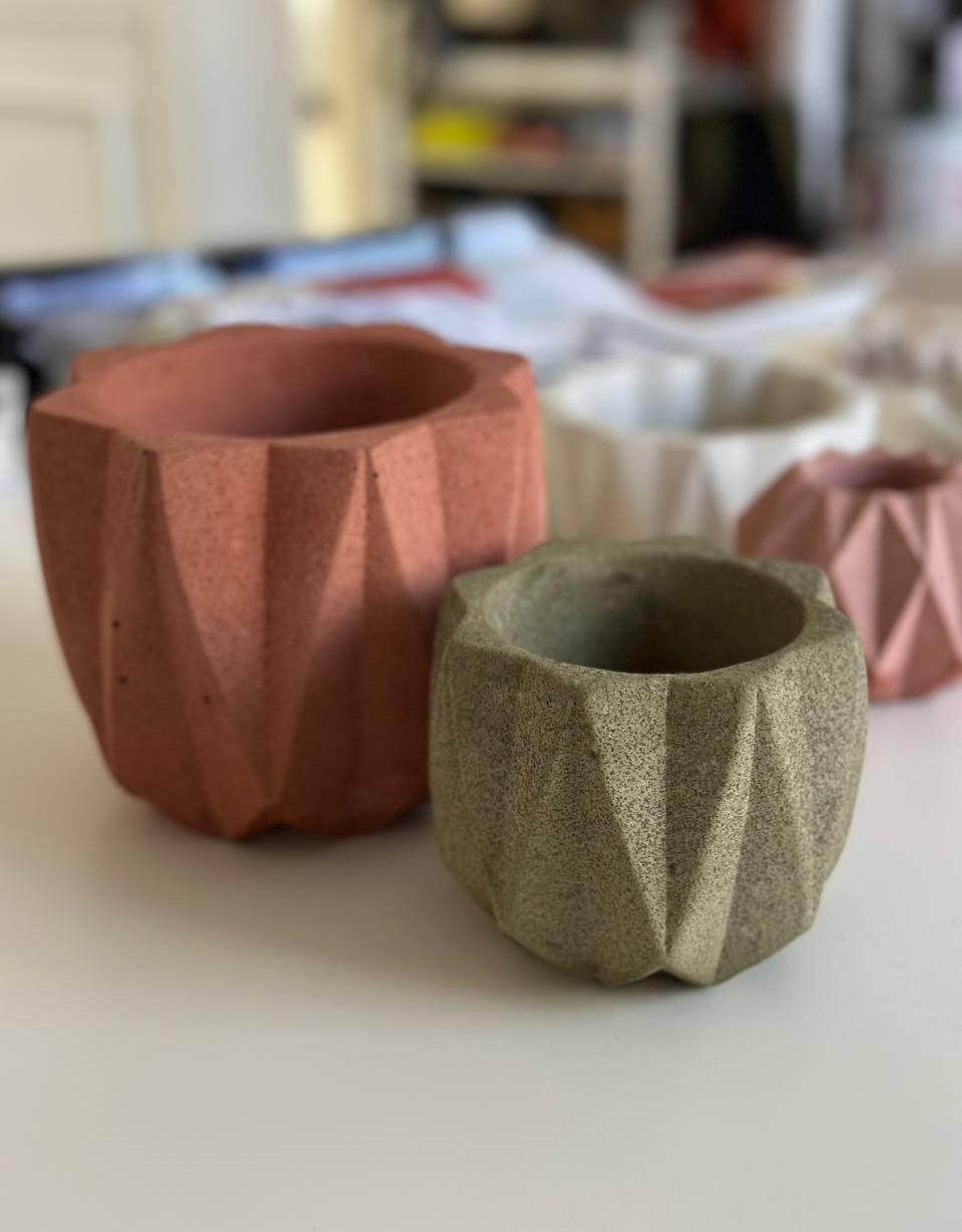Geometric Concrete Planter: Modern Desk Organizer, Boho Home Decor