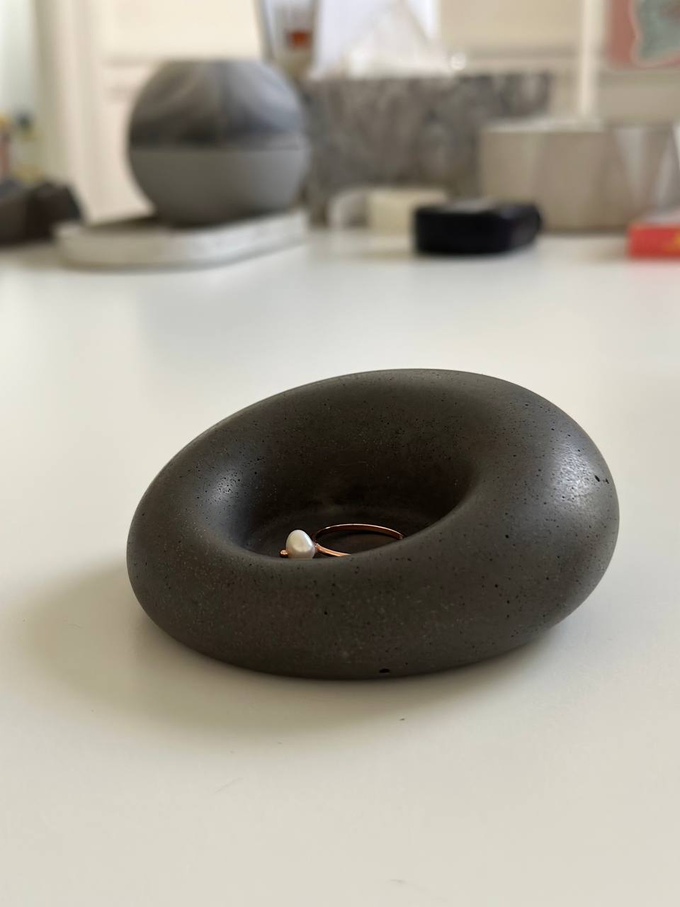 Transform your home with our handmade concrete tray, designed to bring both modern elegance and everyday functionality into your space. With its unique cloudy texture, this tray offers a soft, marbled effect that enhances any minimalistic design. Whether you're looking to upgrade your bathroom accessories, create a sleek jewelry holder, or organize your loose items, this piece blends contemporary style with practical use.