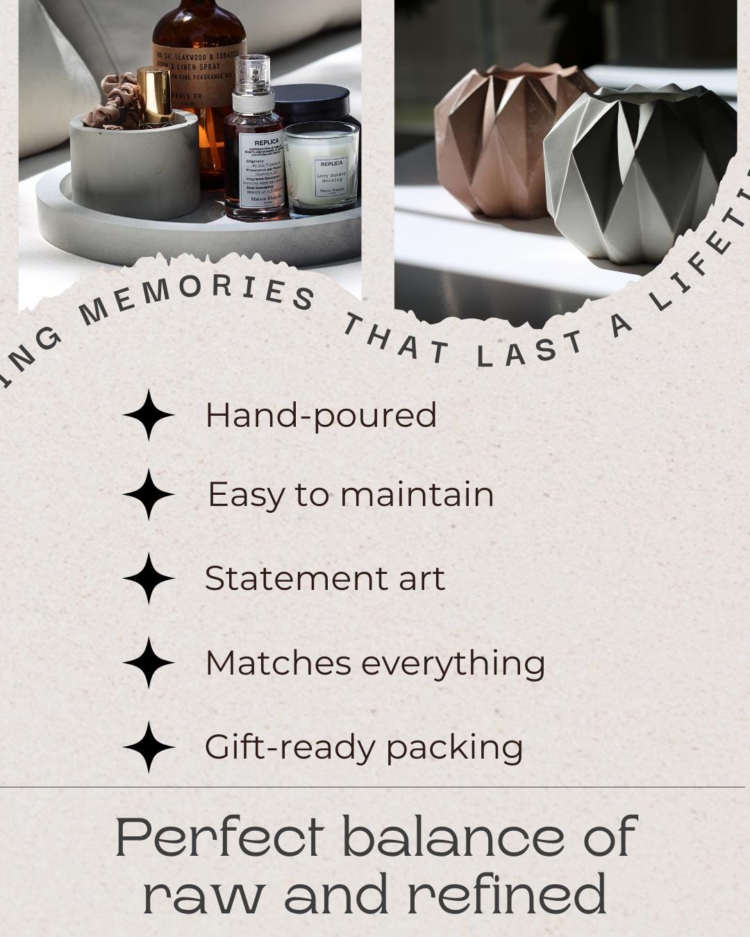 * Eco-Conscious Material: Made from durable concrete, this piece is designed to last and remain timeless.
