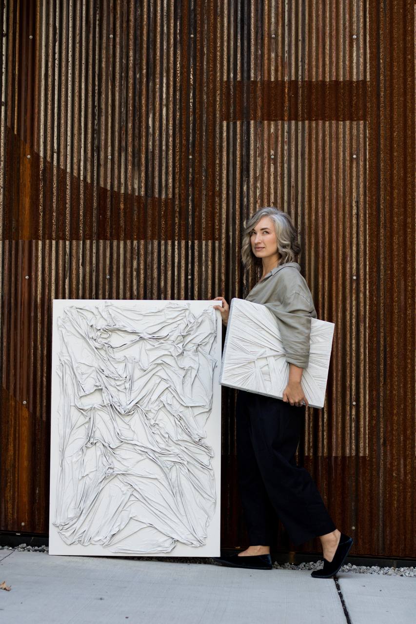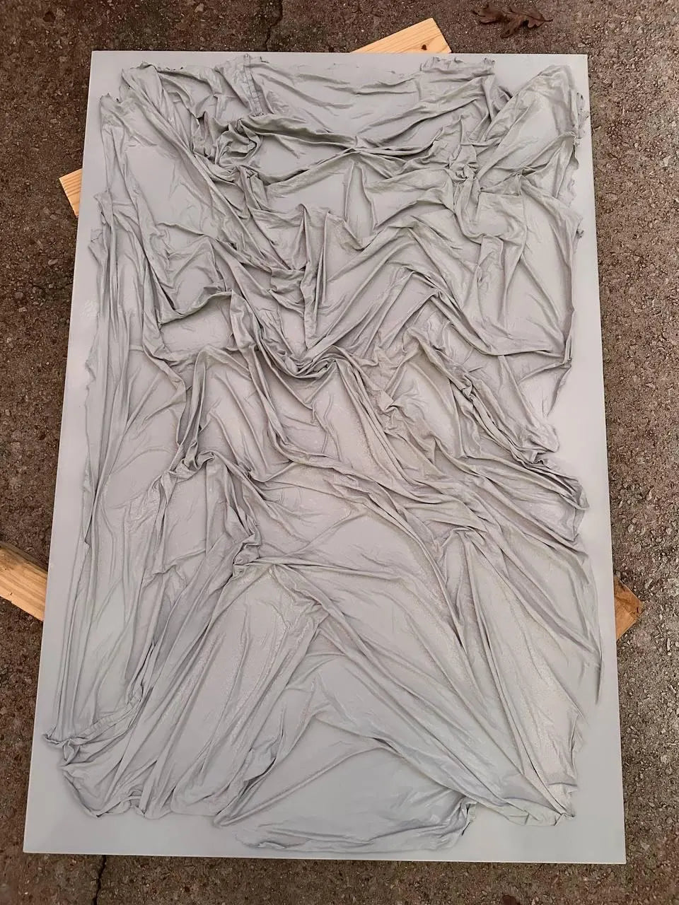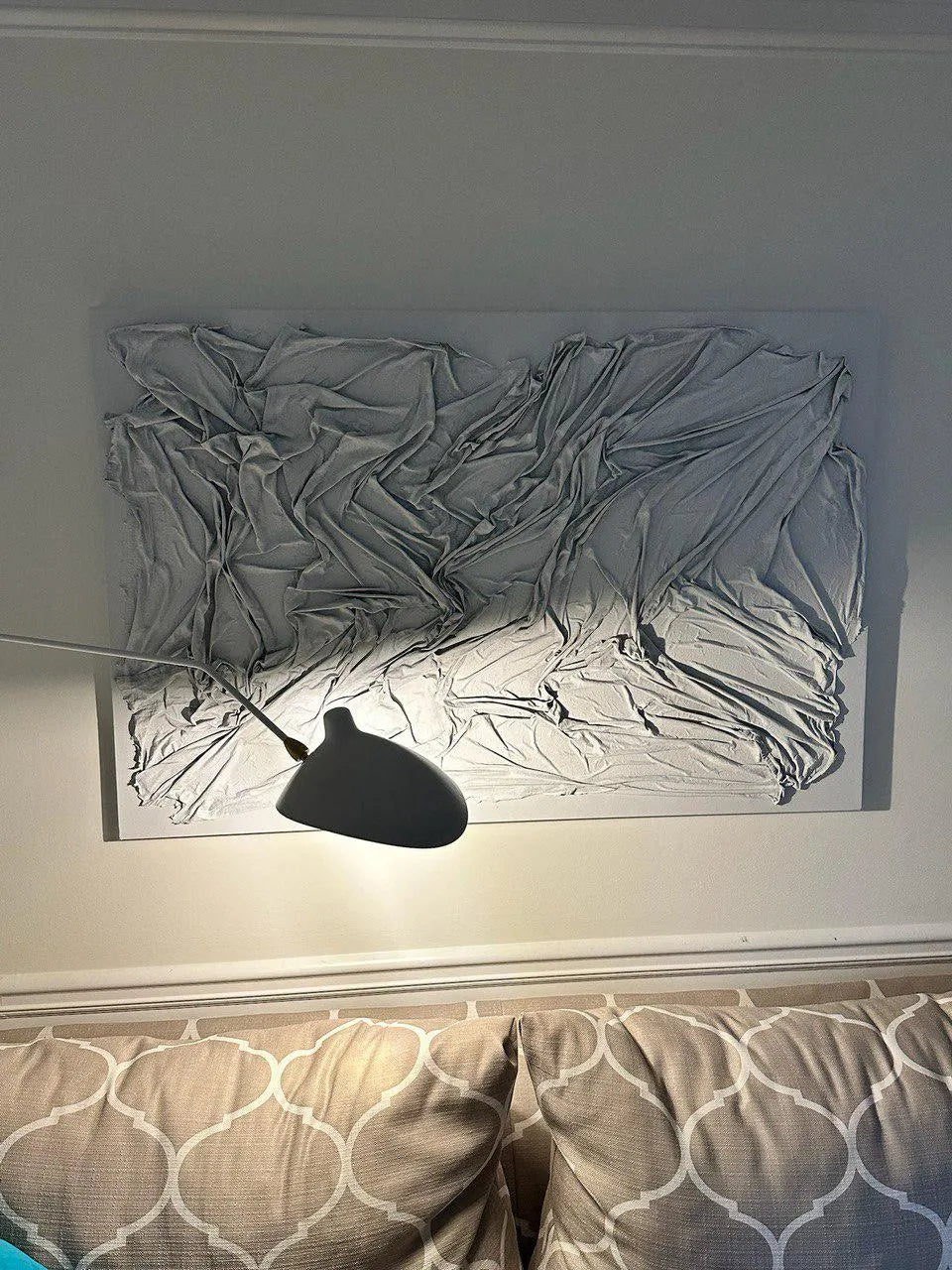 This sophisticated textured artwork is the perfect accent for modern interiors. Handcrafted using fabric, a special fixing mixture, and high-quality paint, it brings depth and dimension to any space.