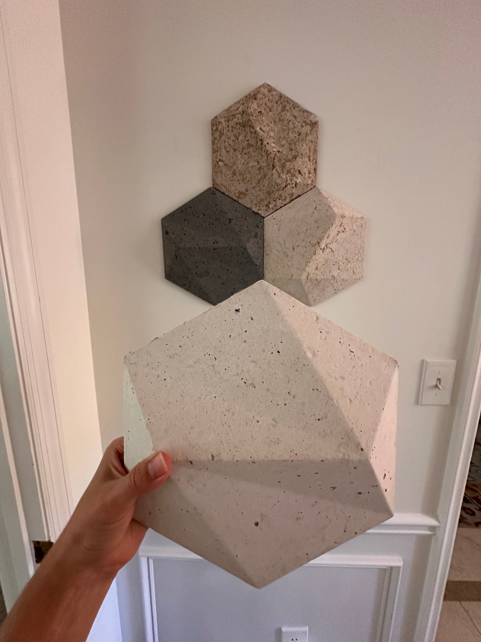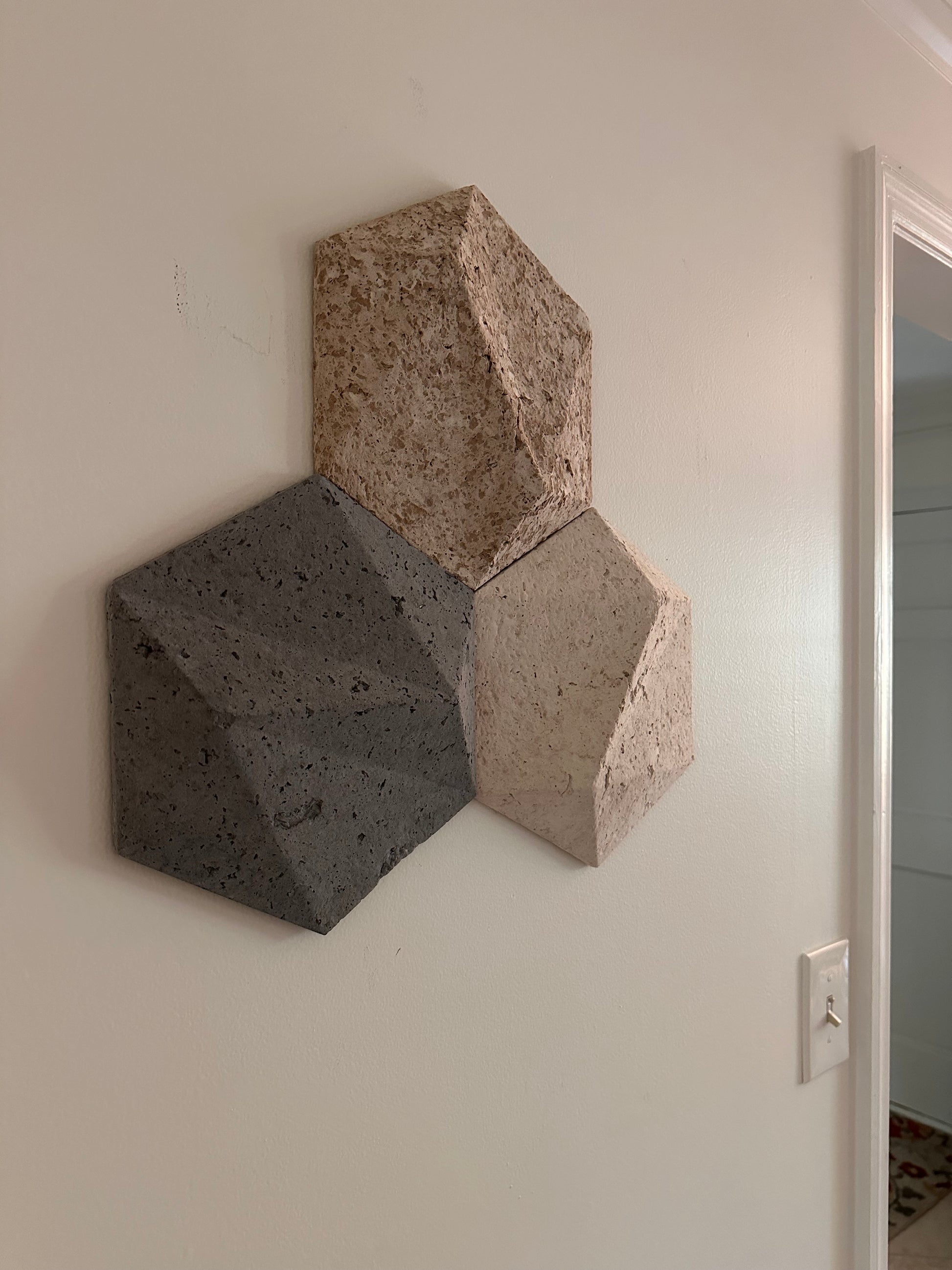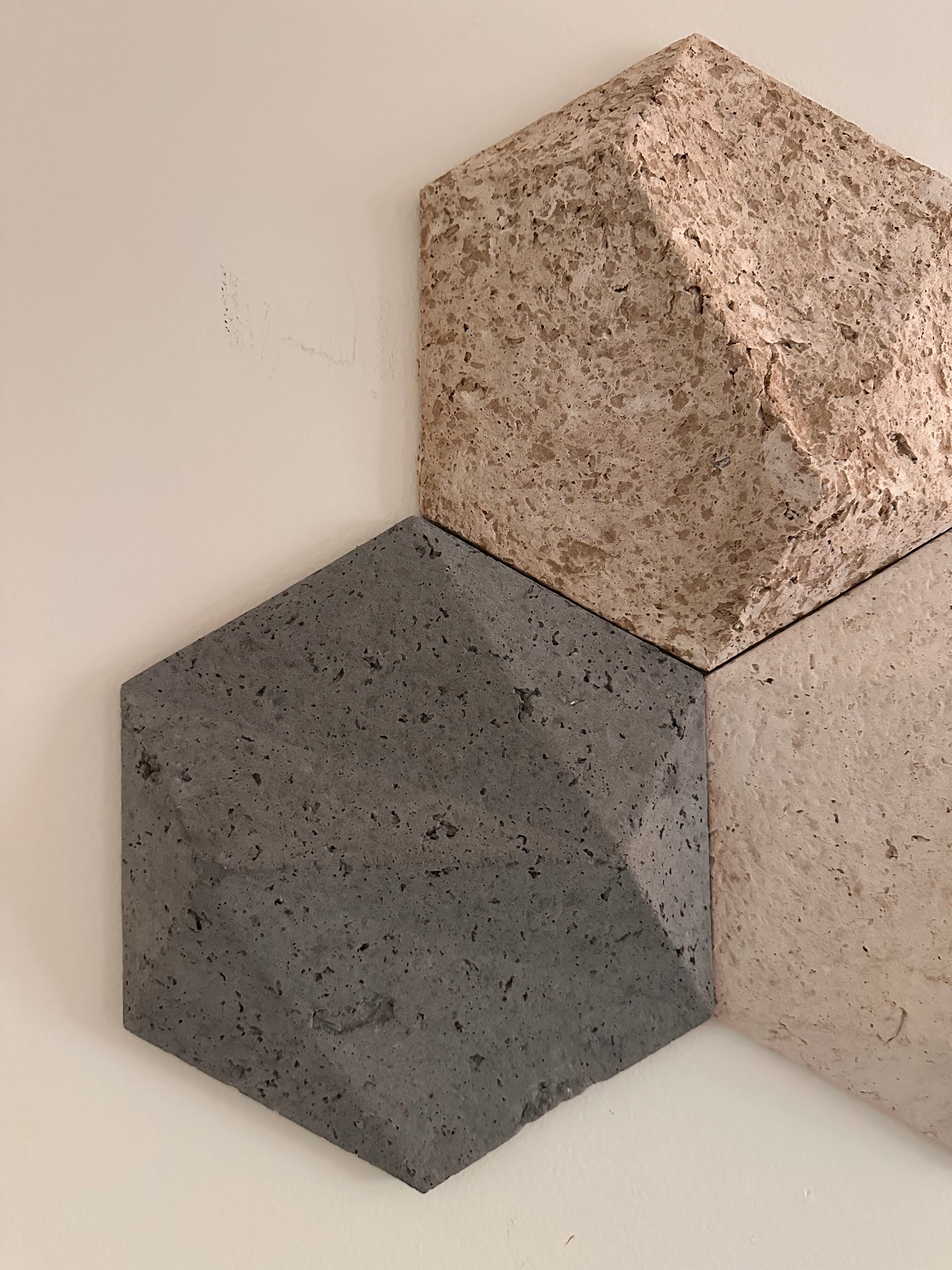 Each piece is lightweight yet durable — made with a gypsum base and a cardboard core, so it’s easy to hang and holds its sculptural shape beautifully. These tiles bring incredible texture and depth to any interior. Inspired by the wabi-sabi philosophy, they celebrate natural imperfection, raw beauty, and minimalist elegance.