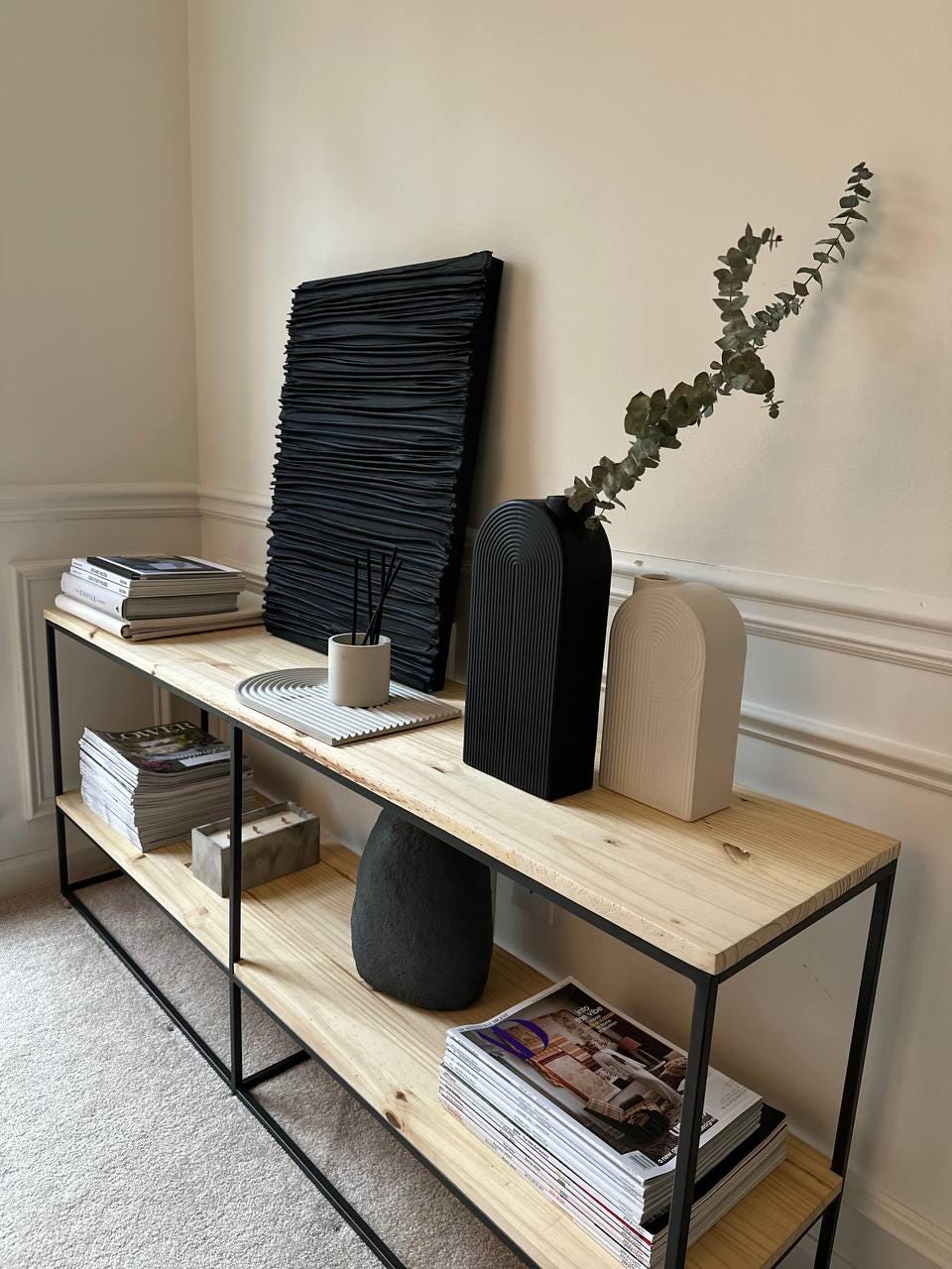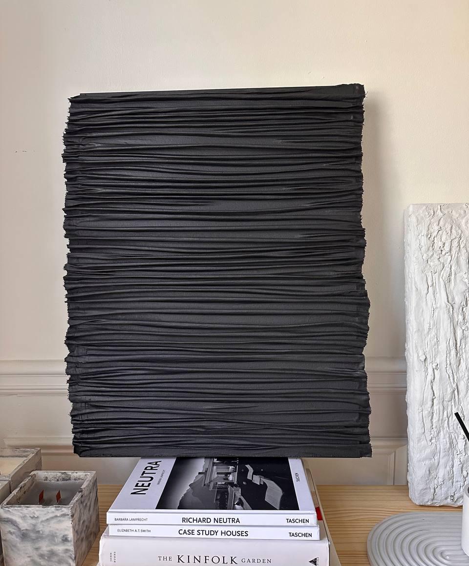 Enhance your space with this handcrafted 3D sculptural abstract wall art, designed to bring elegance and depth to contemporary interiors. Created using carefully folded fabric, this piece showcases a refined minimalist luxury aesthetic with a bold matte black finish. The natural texture and sculptural design add visual interest, making it a statement piece for modern, Scandinavian, or boho Nordic interiors.